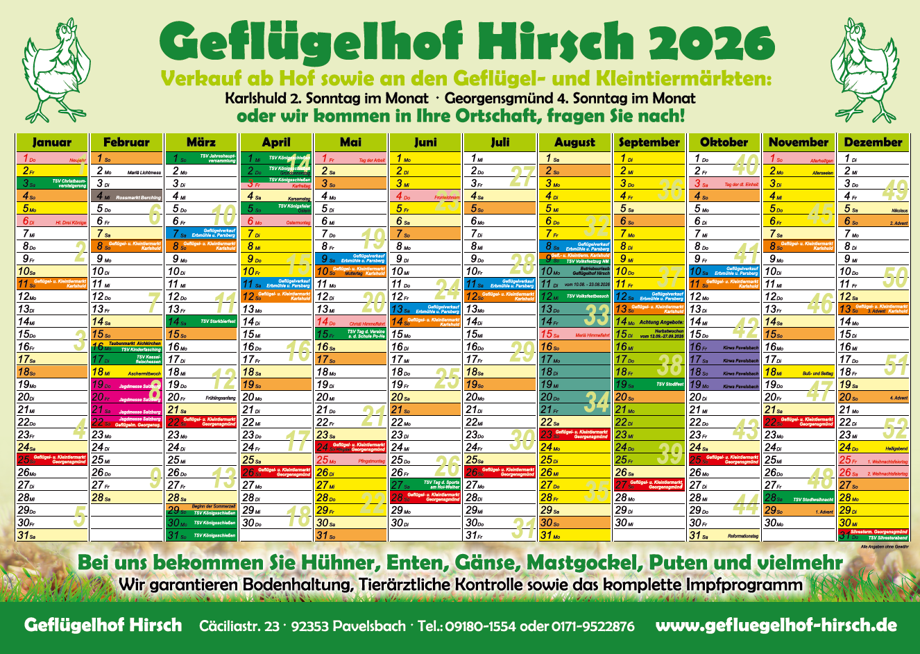 Geflügelhof Hirsch 2026 - Aktueller Kalender